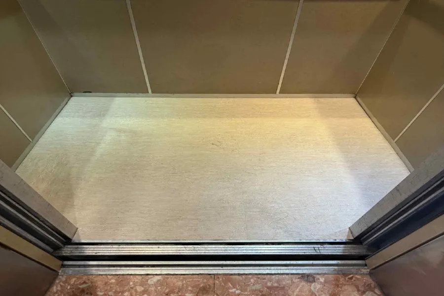 使用耐磨防滑塑膠地板鋪設,讓電梯轎箱空間更安全、耐用並具備整體視覺一致性